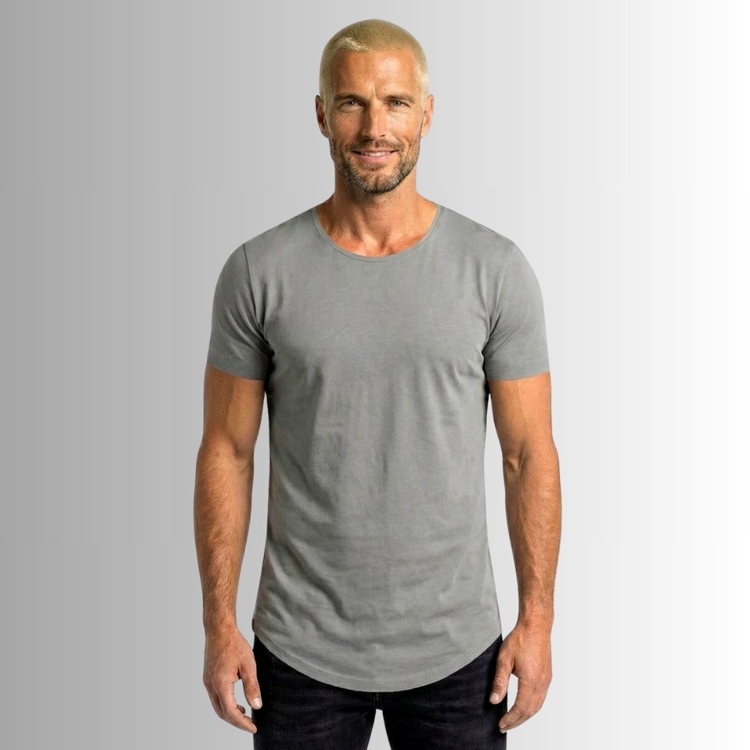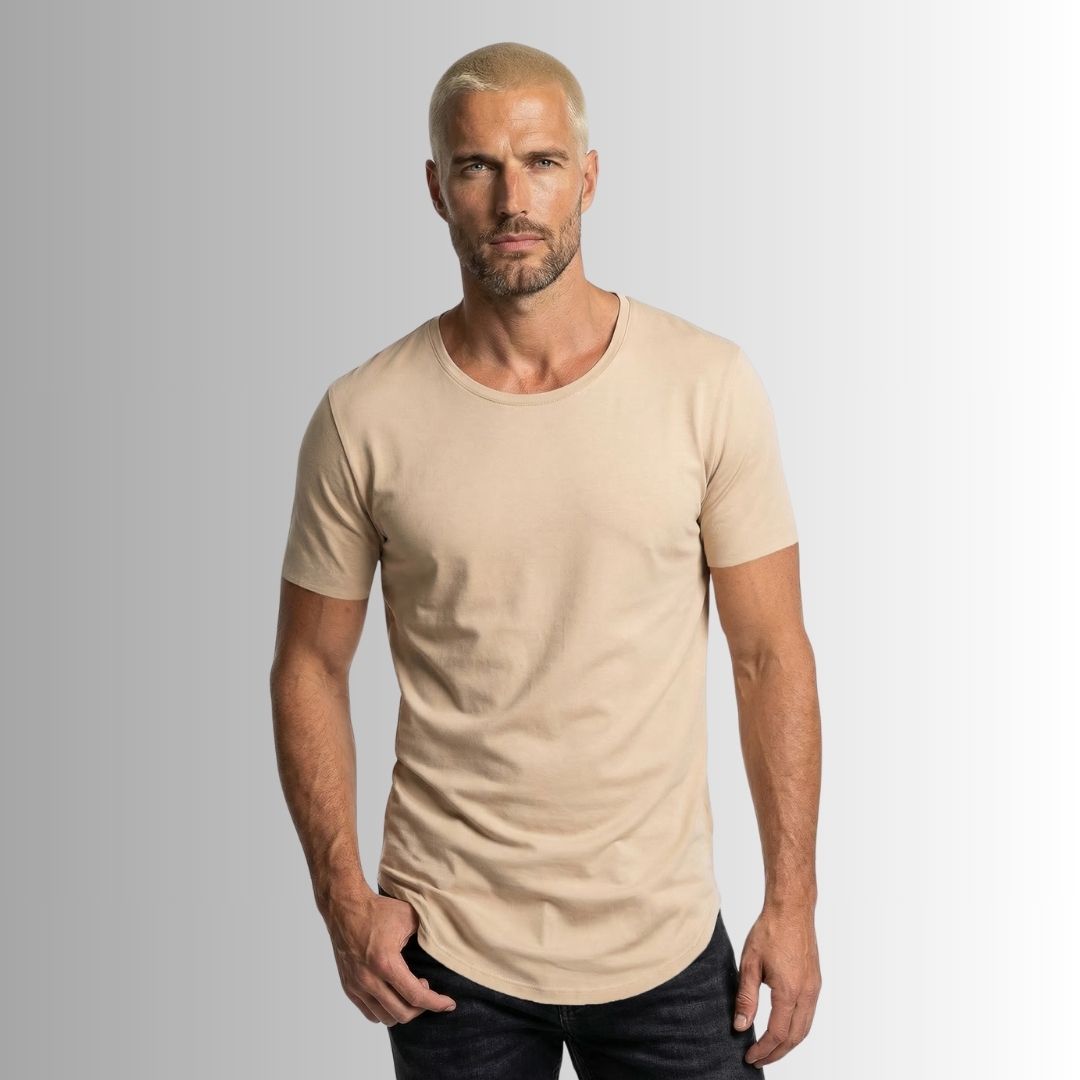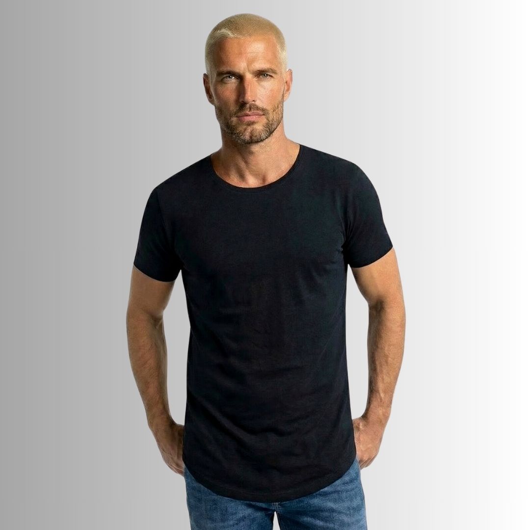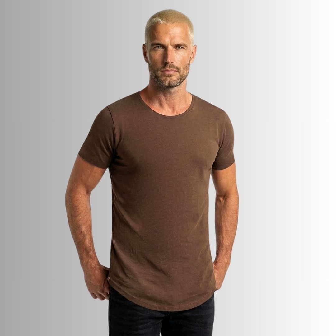 Nuestra Best Seller es una camiseta básica y atemporal, con corte alargado, curvo y rústico, y un cuello redondo semi abierto, dándole así un toque edgy y diferente rompiendo el molde de las camisetas clásicas tradicionales.