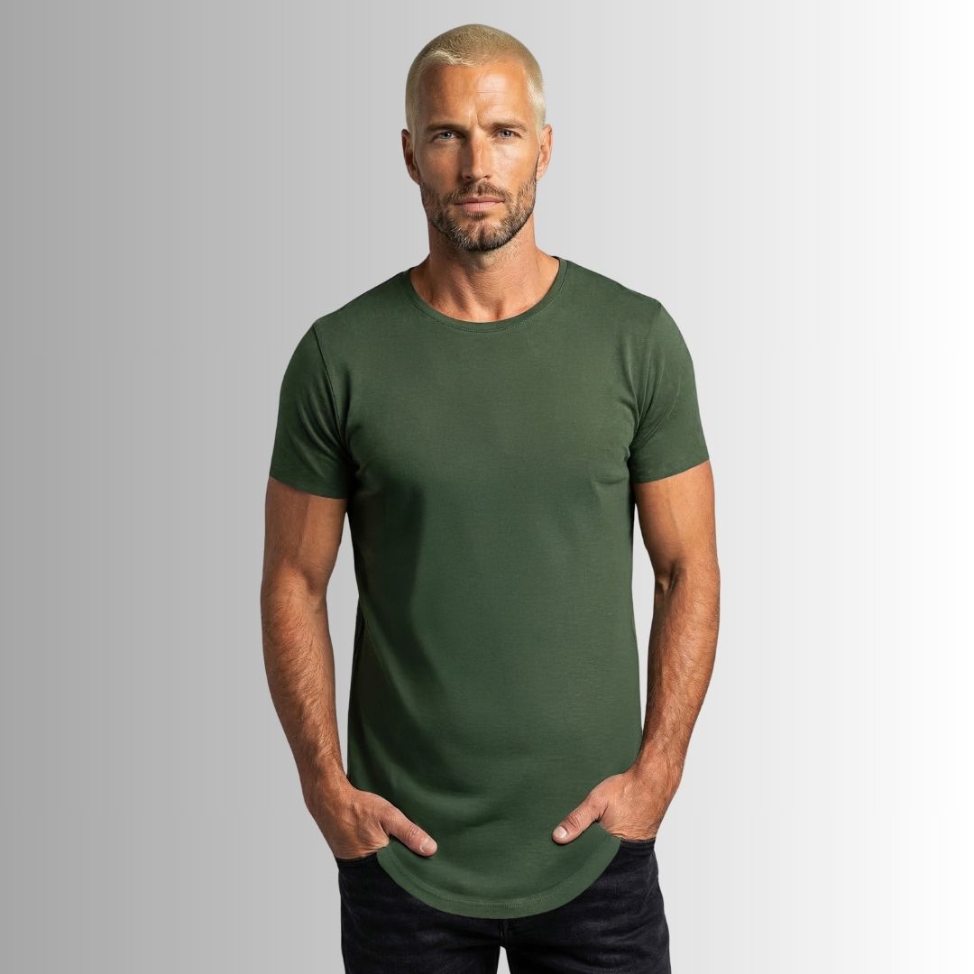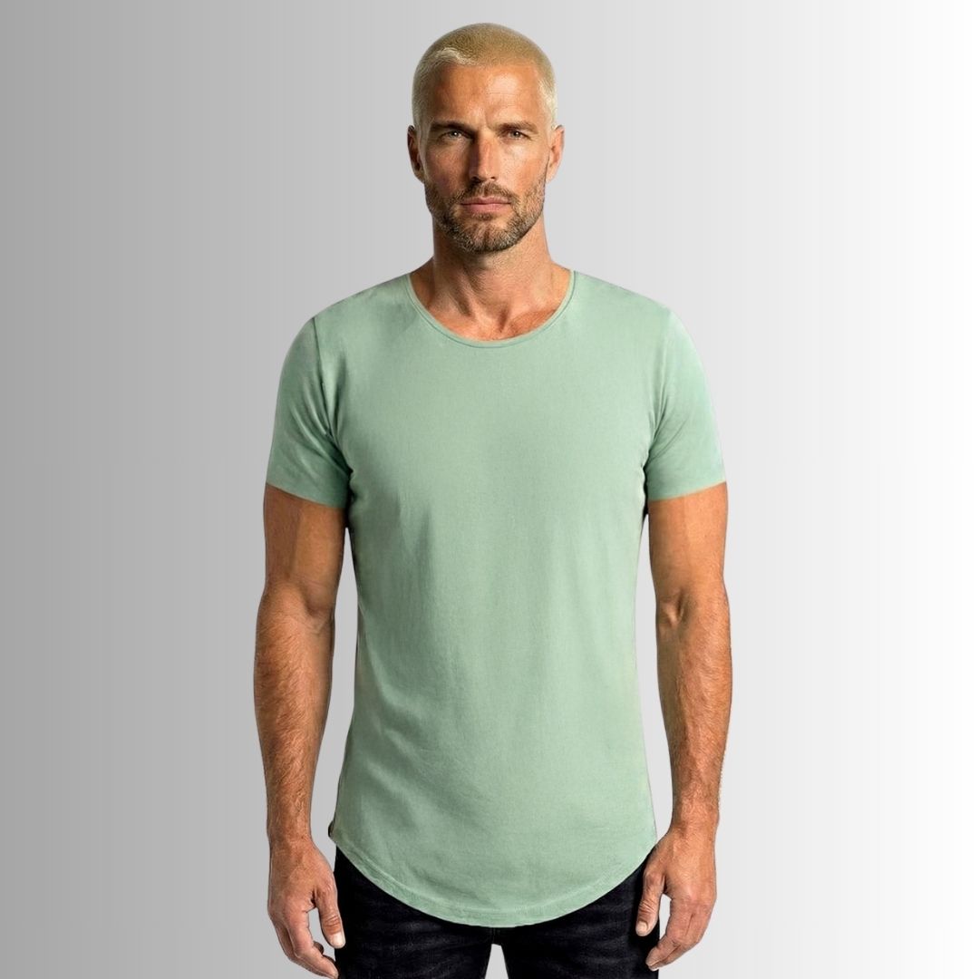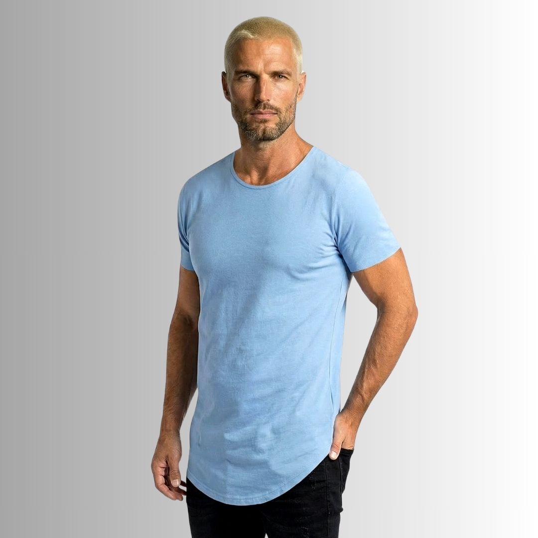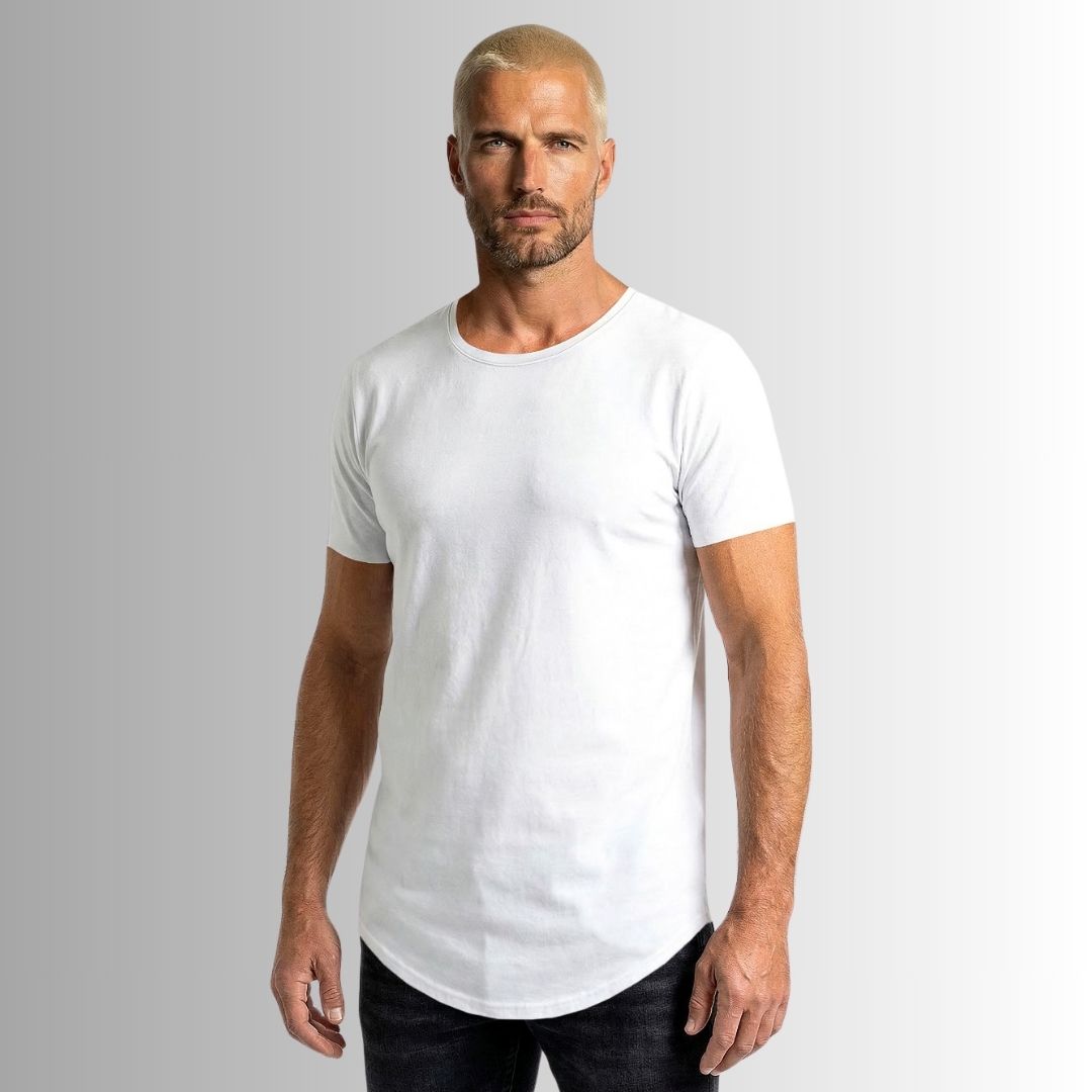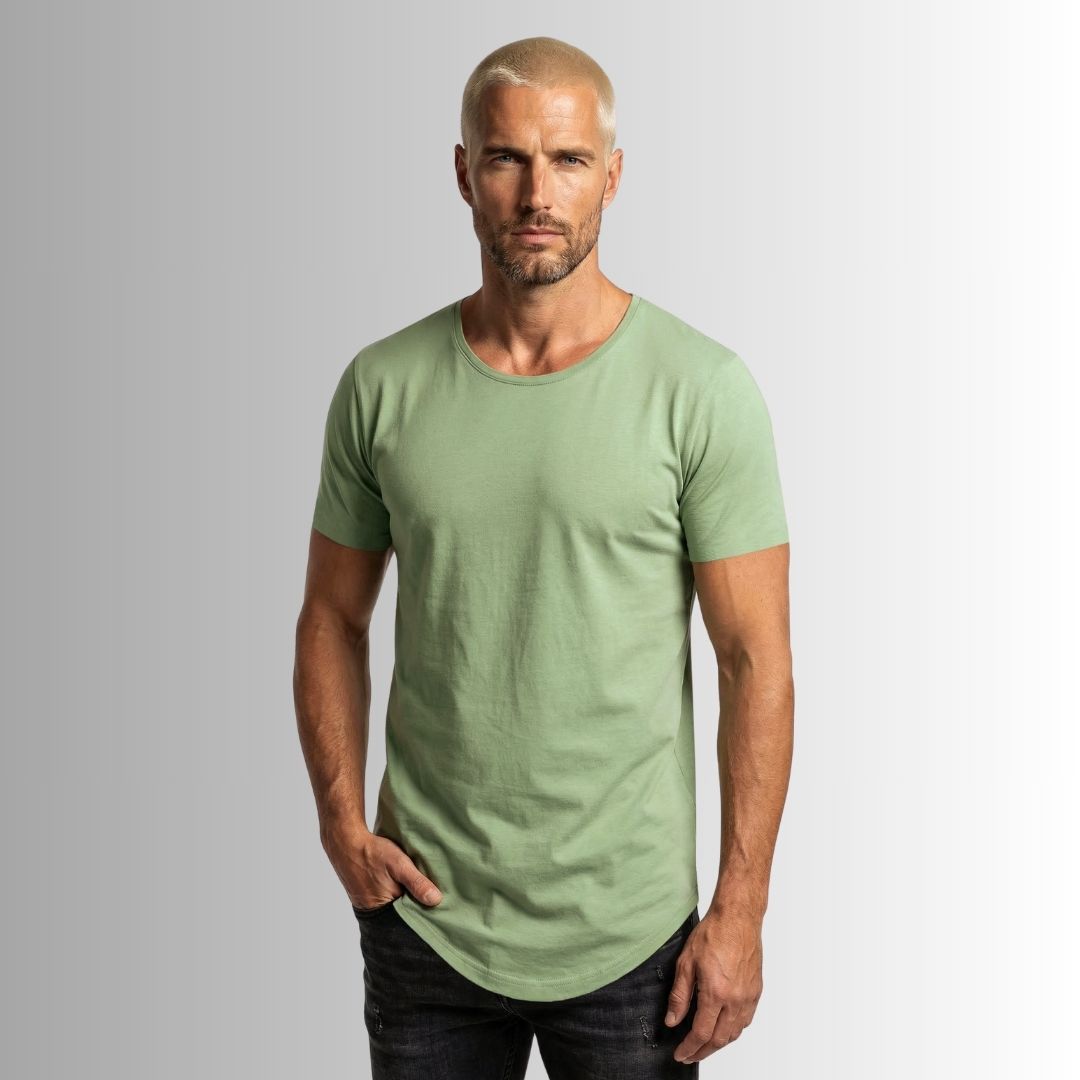 Nuestra Best Seller es una camiseta básica y atemporal, con corte alargado, curvo y rústico, y un cuello redondo semi abierto, dándole así un toque edgy y diferente rompiendo el molde de las camisetas clásicas tradicionales.
