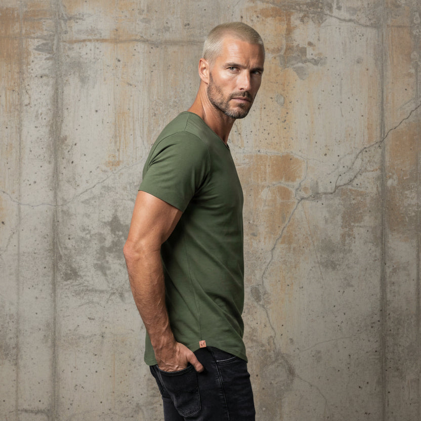Nuestra Best Seller es una camiseta básica y atemporal, con corte alargado, curvo y rústico, y un cuello redondo semi abierto, dándole así un toque edgy y diferente rompiendo el molde de las camisetas clásicas tradicionales.